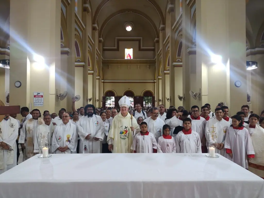 Más de 1500 delegados de nuestra Arquidiócesis de San Pedro Sula, realizaron su peregrinación hacia la catedral Metropolitana San Pedro Apóstol en el marco de la celebración del Jubileo 2025. Monseñor Miguel Lenihan los recibió en la Catedral y los invitó a cruzar la puerta de la esperanza y a participar en la Eucaristía.