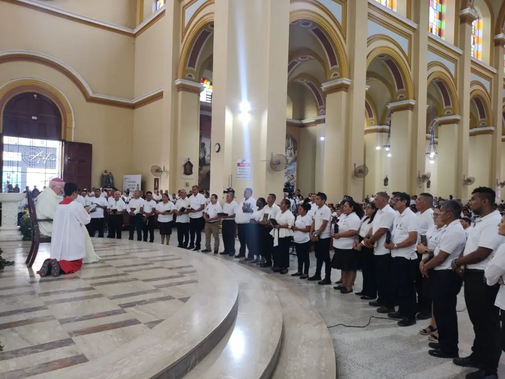El Ministerio de Delegados de la Palabra de Dios peregrinó desde la Plaza las Banderas, les acompañaron el padre Henry Gómez, responsable arquidiocesano de este ministerio y los padres Adonis Sáenz, vicario de pastoral, Héctor Núñez, decano de zona San Pablo, Manuel Banegas, Benedicto Maldonado, Osman Solares, Manuel Sánchez, Jeremías Lemus y Josué Álvarez, también les acompañaron sus familias.El sonar de las campanas de catedral anunció la llegada de los peregrinos, Monseñor Miguel Lenihan los recibió y les agradeció por el camino recorrido y especialmente por el camino espiritual, de conversión, comunión, renovación misionera y de caridad fraterna, “los invito a entrar por esta puerta de la esperanza, siguiendo mis pasos y reunirnos en asamblea litúrgica”.