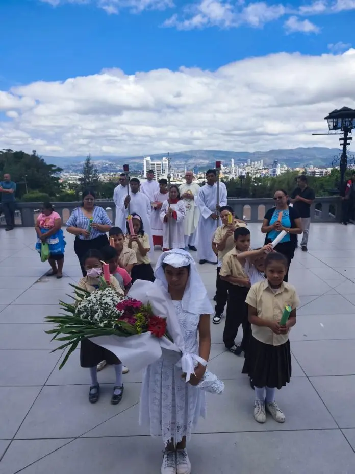 La Escuela Santa Clara de Asís, ubicada en la Colonia Ramón Amaya Amador de Tegucigalpa, conmemoró su 27 aniversario con una emotiva Eucaristía en la Basílica de Nuestra Señora de Suyapa, en la que participaron más de 800 alumnos, docentes, colaboradores, voluntarios hondureños y extranjeros, junto a madres de familia de esta institución.