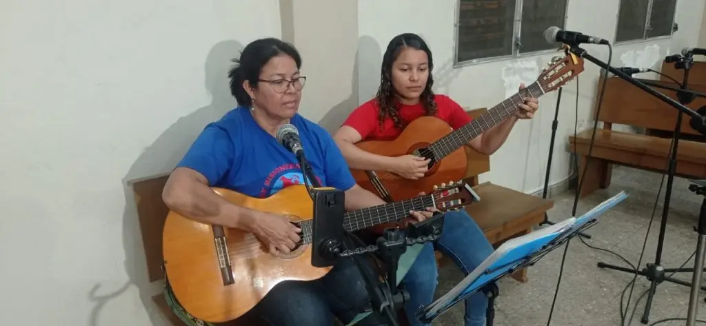 Uno de esos retos es haber aprendido a tocar la guitarra, pues no tenían a nadie que animara los encuentros en su comunidad, podrimos decir, que este es apostolado que nace de la misión, porque lo que comenzó como una necesidad se convirtió en una vocación, y en la inspiración para seguir anunciando a Cristo. “Algo vieron en mí para pedirme que trabajara con los niños de Infancia Misionera en la Aldea Cerro Grande, lugar donde vivo, sabiendo que era una gran responsabilidad, asumí el reto”. A pesar que en cada reunión se hacían juegos y cantos con los niños, sabía que hacia falta el sonido de un instrumento, ahí surge la iniciativa de aprender a tocar la guitarra, pero no lo hizo sola, aquí se sumó su hija Angie Raudales quien era parte del grupo que ella atendía, y desde ese entonces, apoyadas únicamente con tutoriales de YouTube han hecho florecer un don que ya estaba en ellas, pero necesitaban regarlo para que diera frutos.